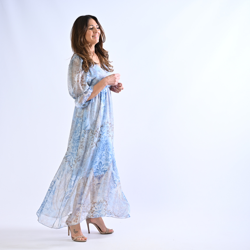Abito fantasia damascata con scoccolo a V davanti e dietro