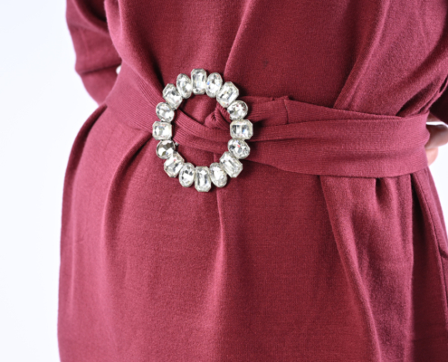 Abito in maglia con collo a lupetto e cintura inclusa
