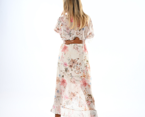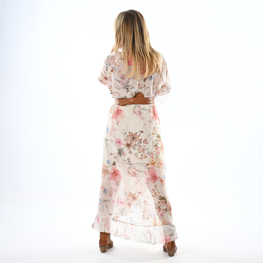 Abito con volant fantasia fiorata con cintura inclusa