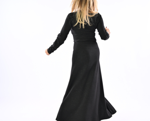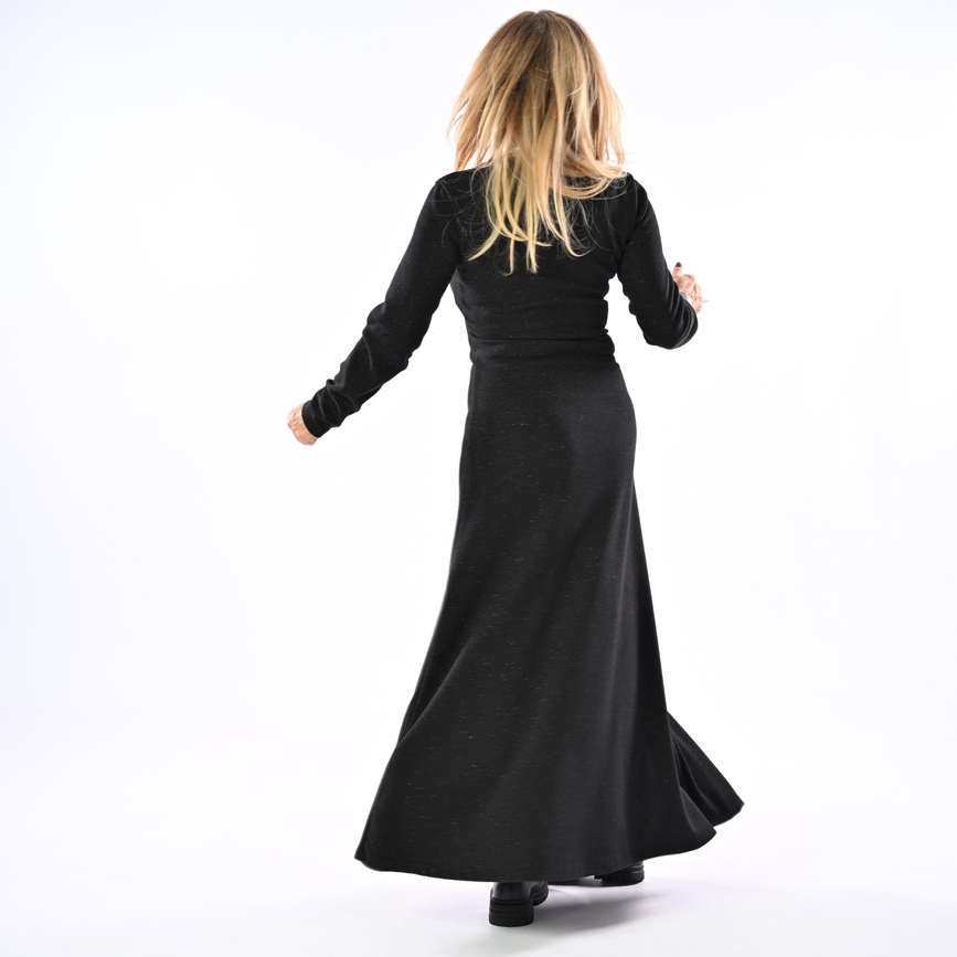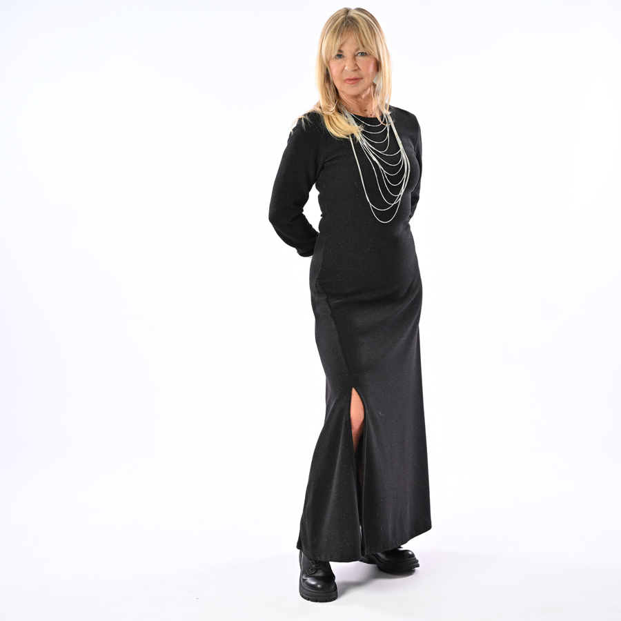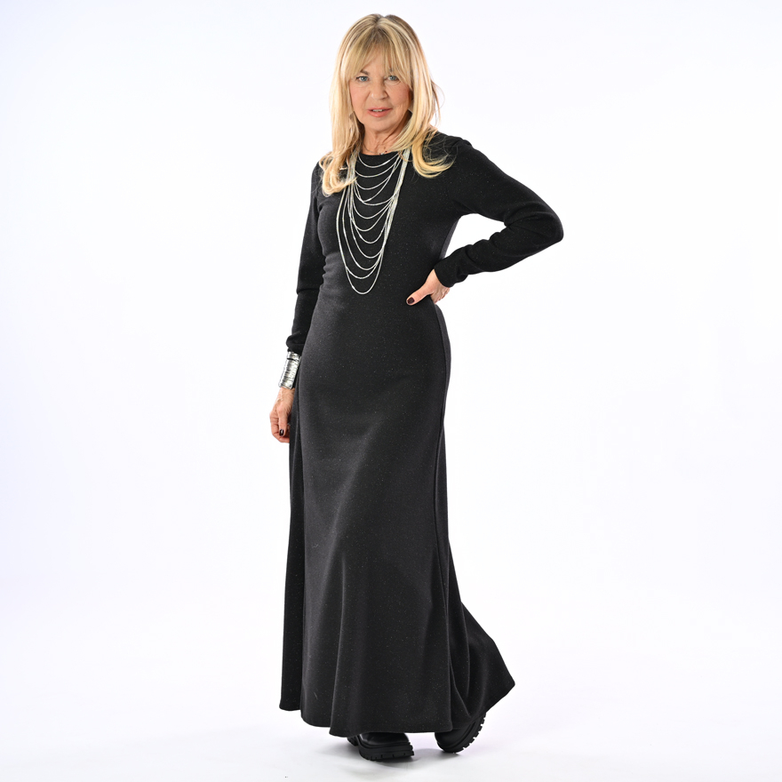 Abito in maglia con lurex con spacco