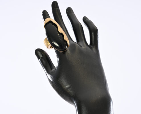 Anello con elastico e pietra nera