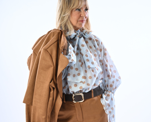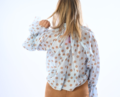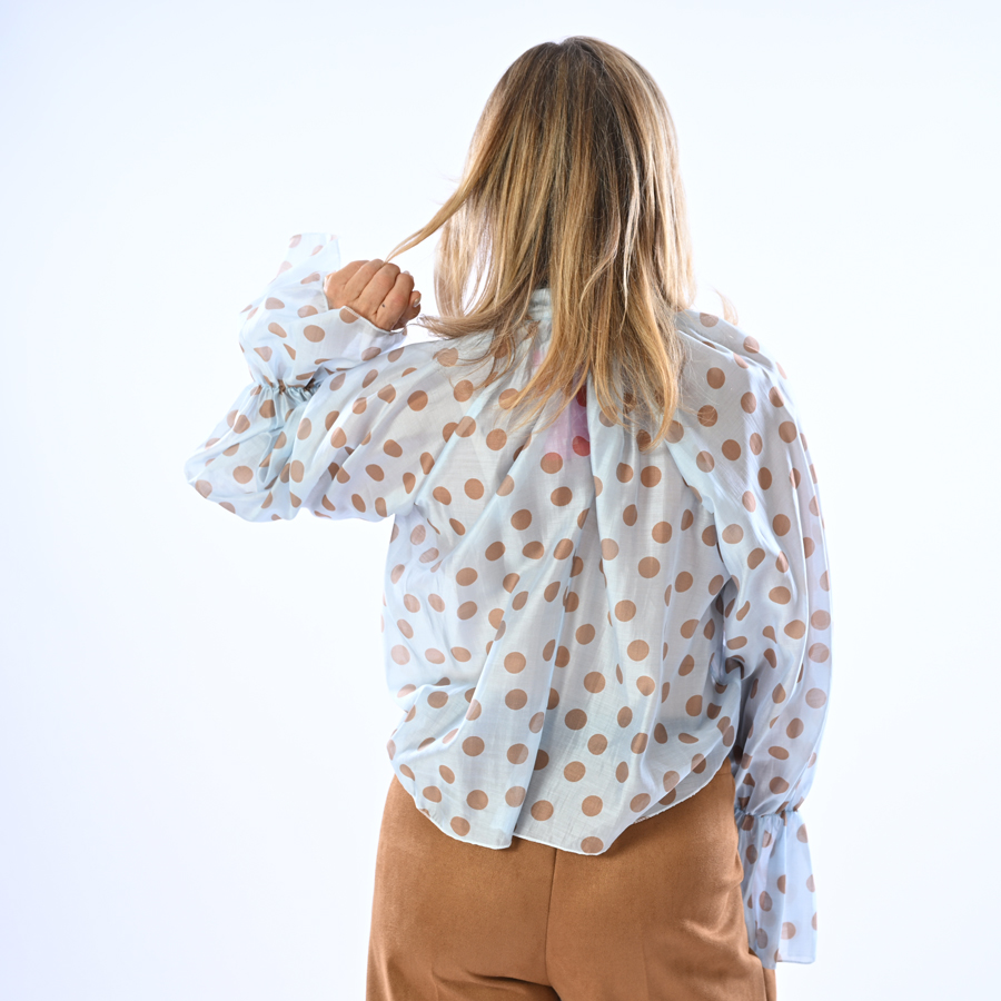 Blusa con manica a campanella a pois con fiocco
