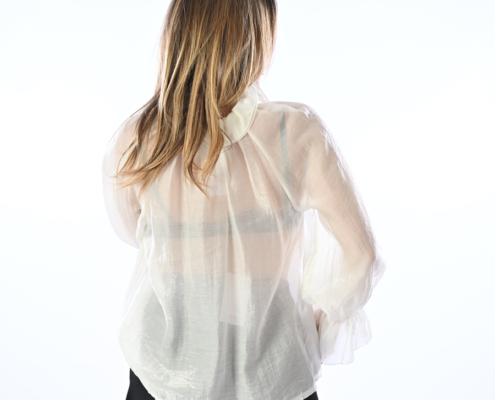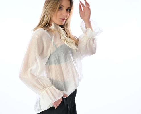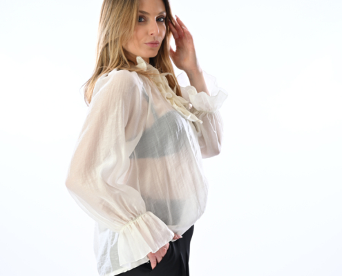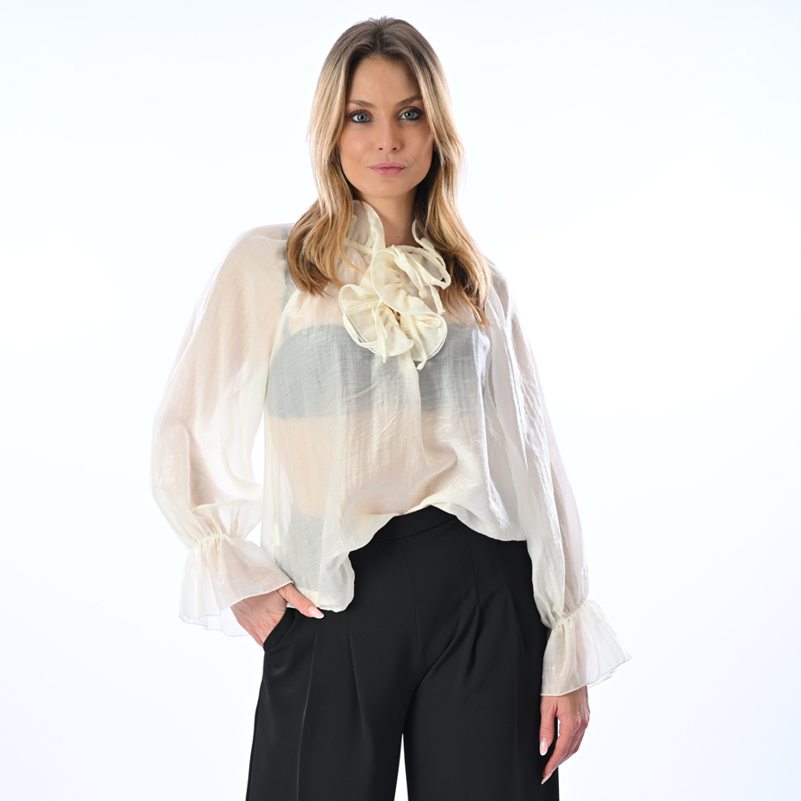 Blusa con volant ed elastico sui polsi