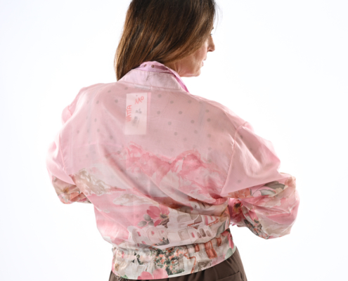 Bomber in voile con zip, coulisse e collo coreano