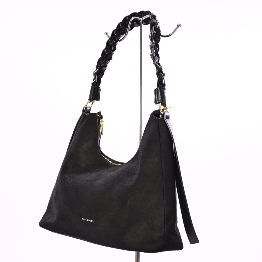 Borsa nera ecodainetto manico intrecciato
