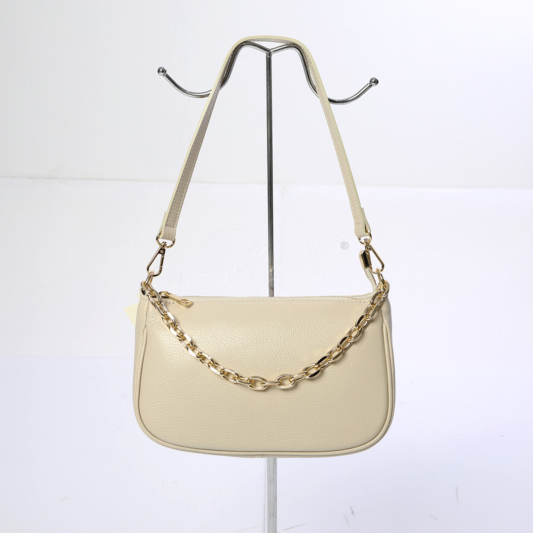 Borsa con dettagli oro e tracolla in pelle