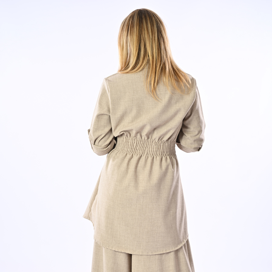 Camicia con bottoni lunga e con pence in vita