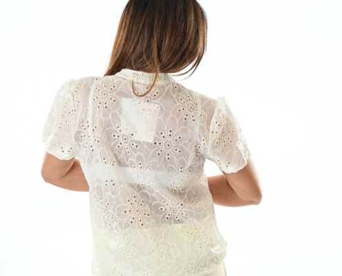 Camicia manica corta in pizzo con alamri