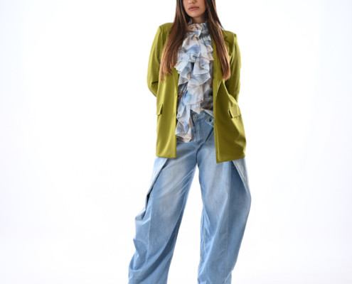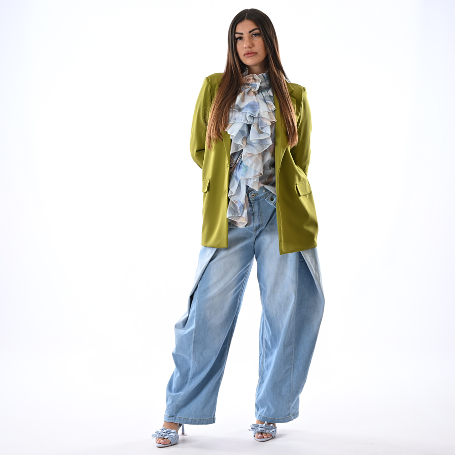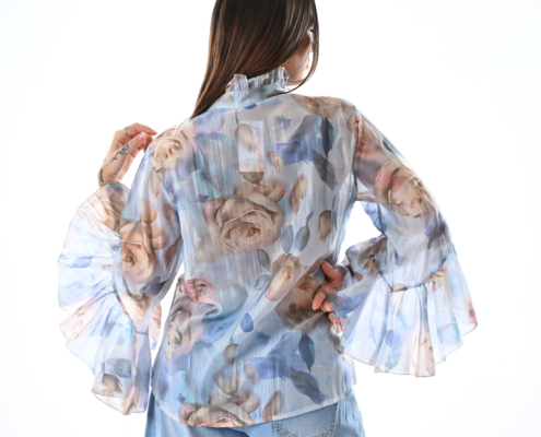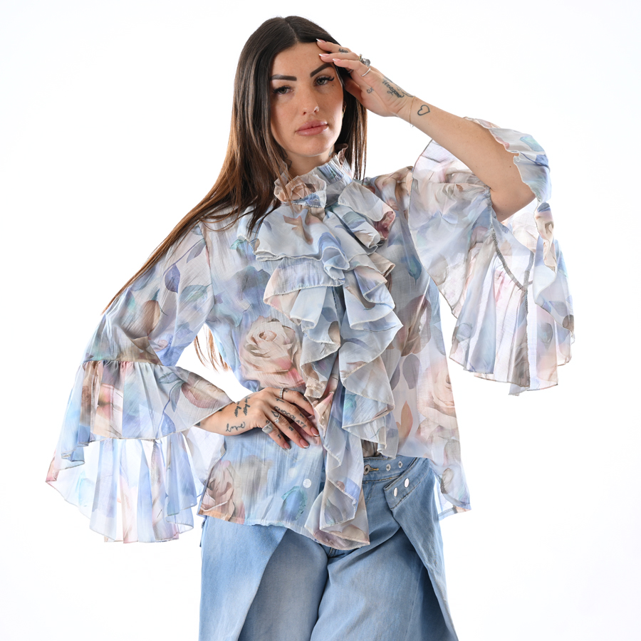Camicia con voulants fantasia manica a campana