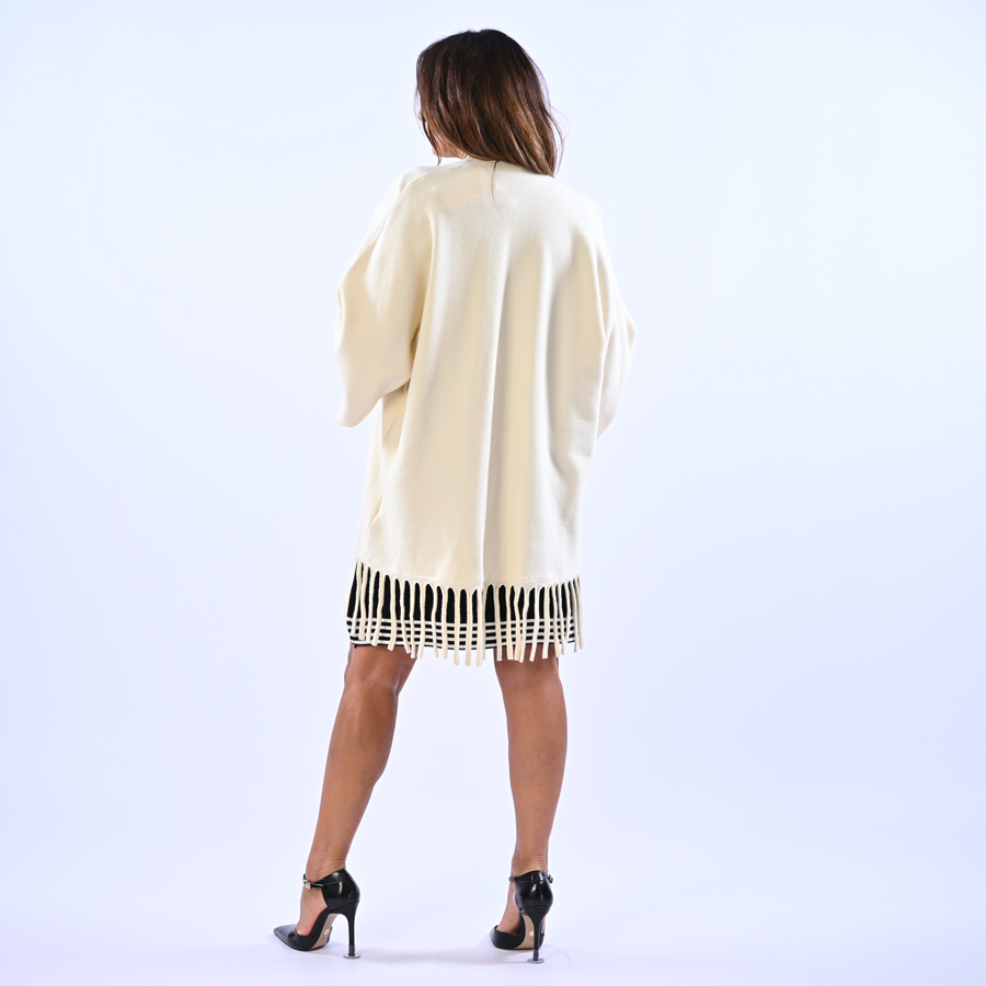 Cardigan a kimono aperto con frange