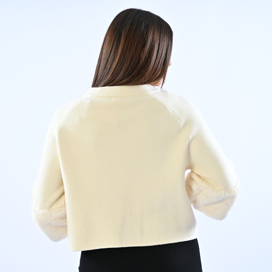 Cardigan con maniche a pipistrello e polsi in ecopelliccia 53%