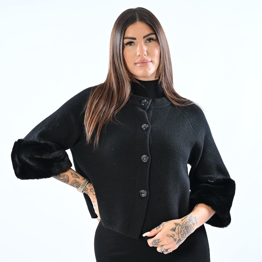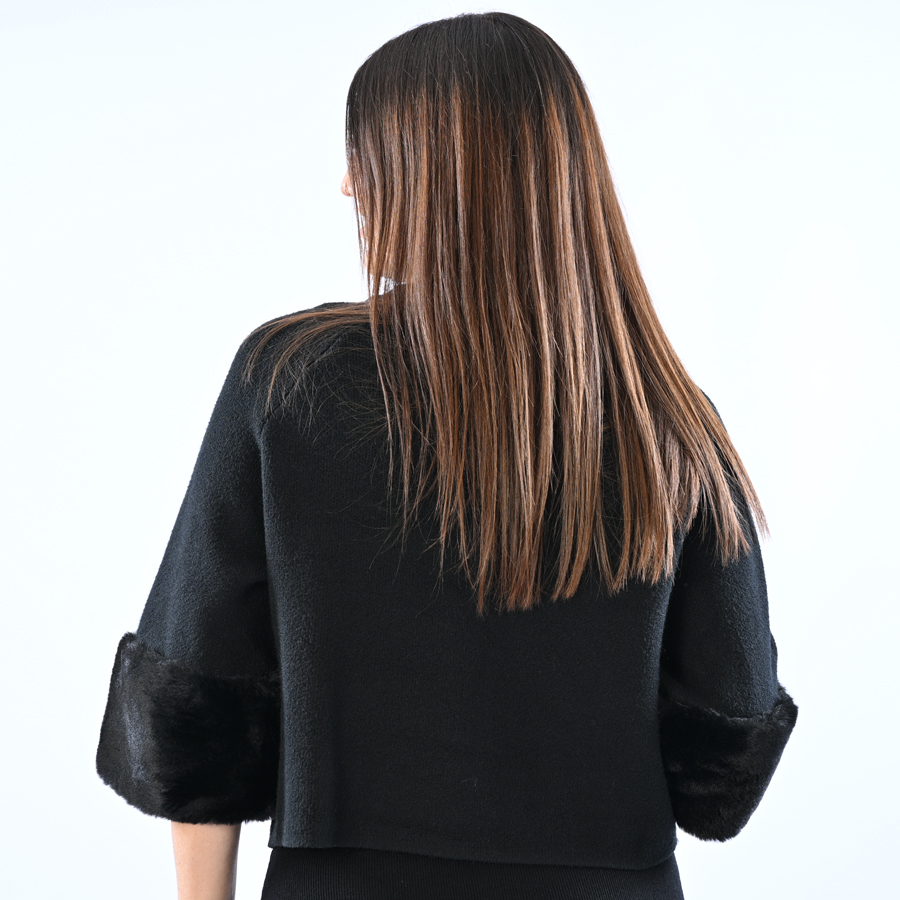 Cardigan con maniche a pipistrello e polsi in ecopelliccia