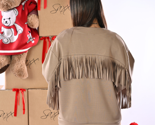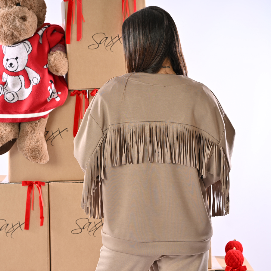 Cardigan  con frange e tasche