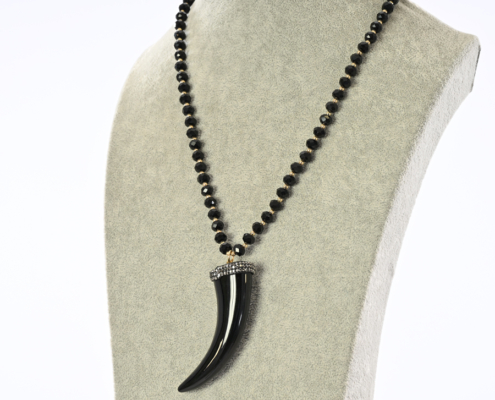 Collana con perline e ciondolo corno