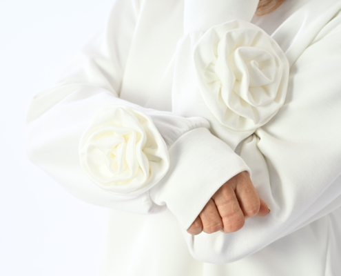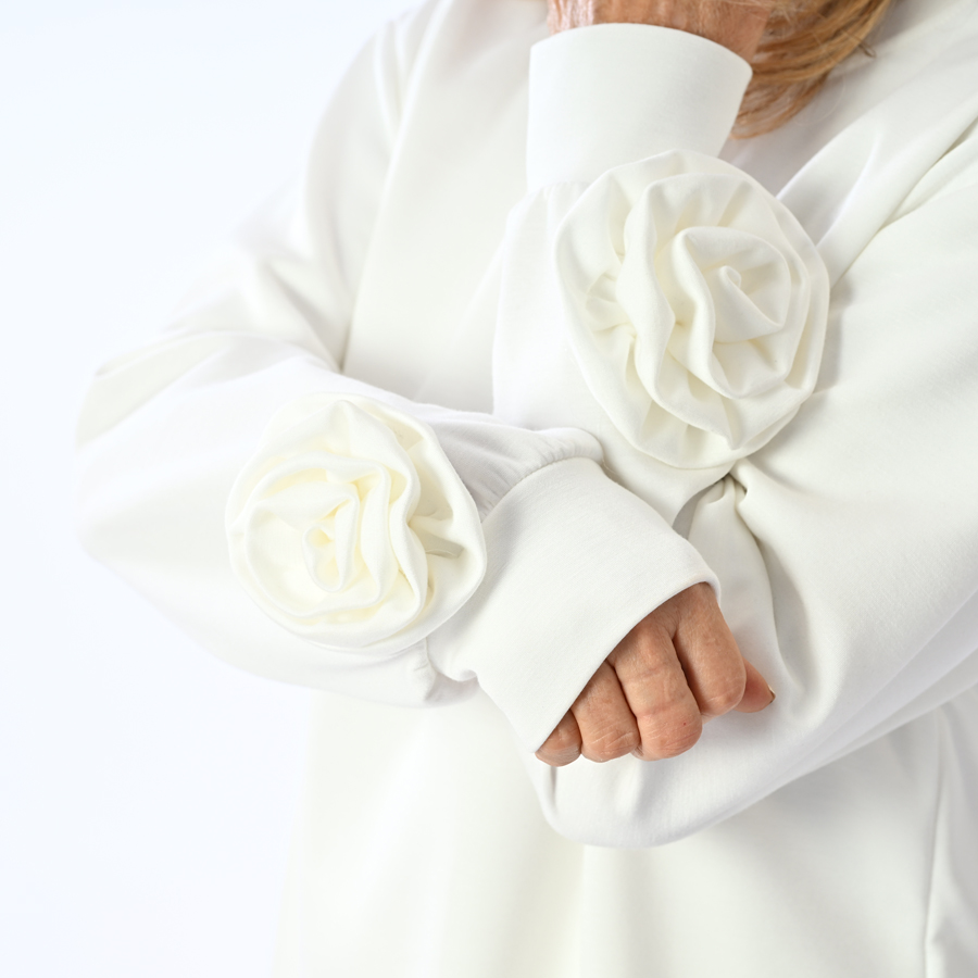 Completo sport con pamtalone a palazzo e felpa con rose su manica