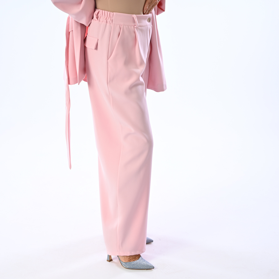 Completo giacca con bottoni e laccio in vita  e pantalone a palazzo