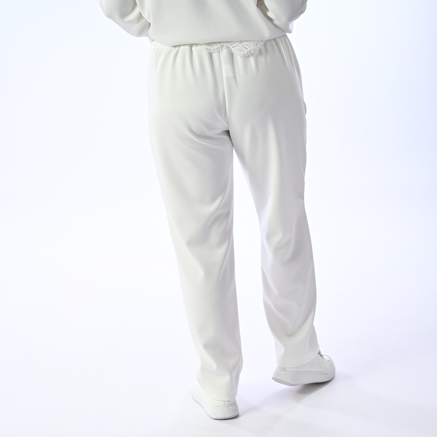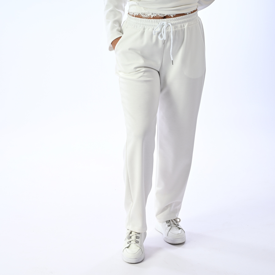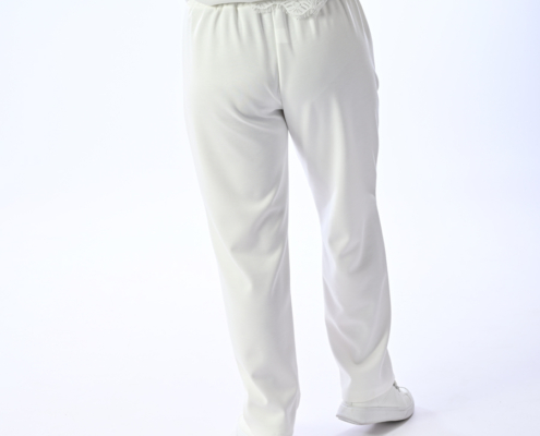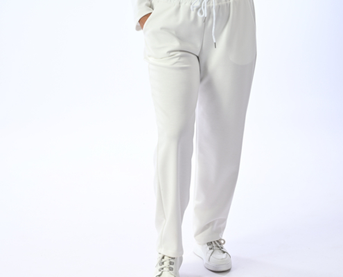 Completo sport con maglia più lunga da un lato con dettagli in pizzo sopra e sotto e pantalone con elastico in vita
