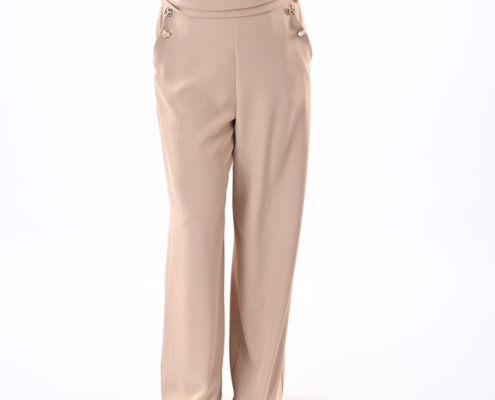 Completo maglia smanicata con dettaglio laterale + pantalone palazzo con bottoni e tasche