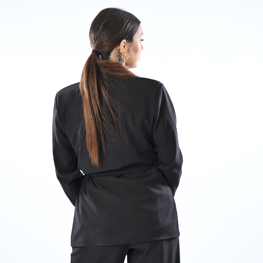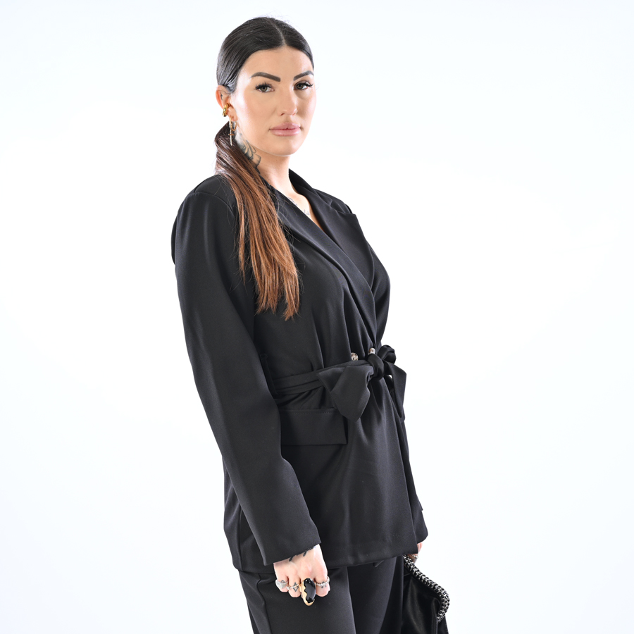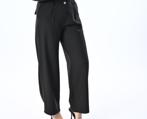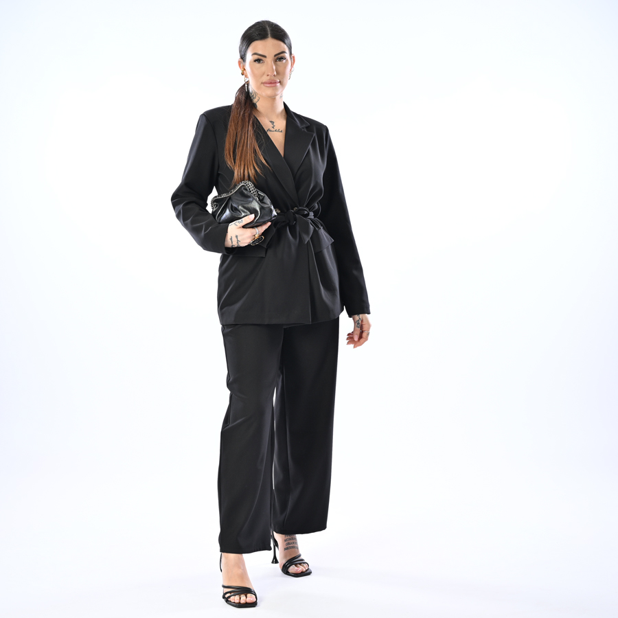 Completo con pantalone a palazzo e giacca con fusciacca in vita