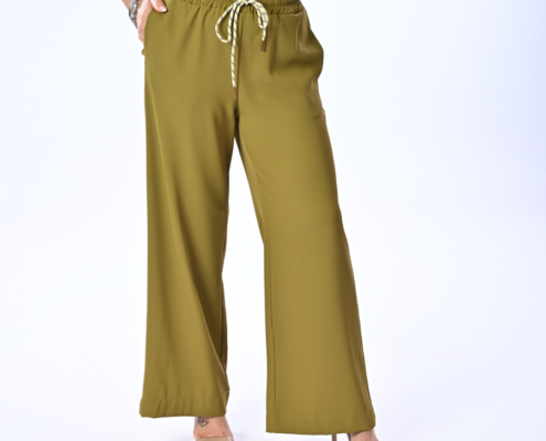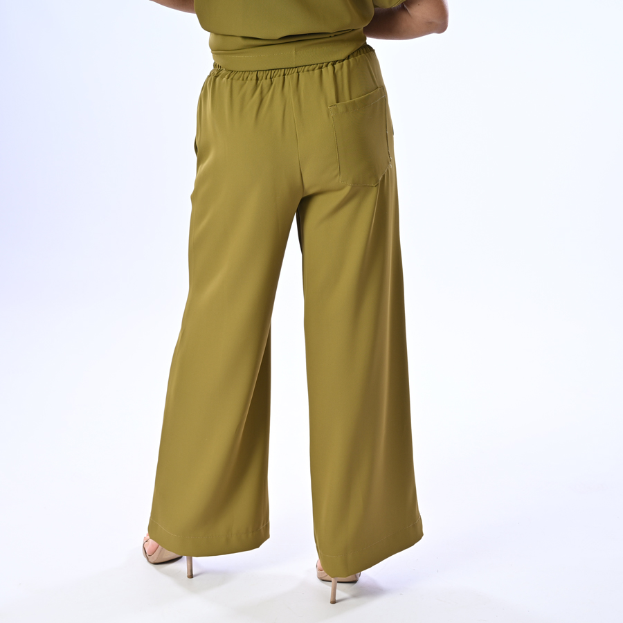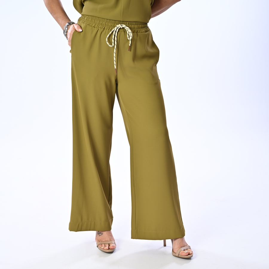 Completo con blusa scollo a V e pantalone a palazzo con coulisse elasticata