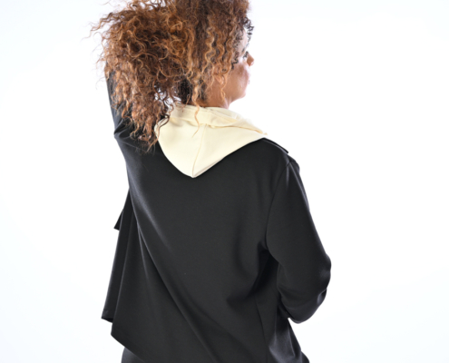 Completo sport con pantalone con coulisse elasticata in vita e giacca con cappuccio removibile
