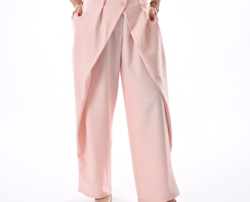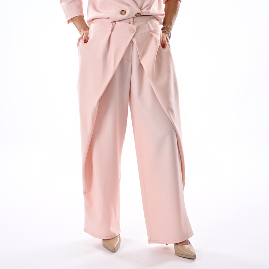 Completo con giacca a scatoletta e pantalone incrociato davanti