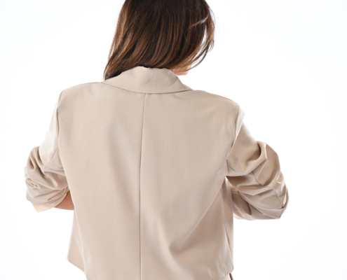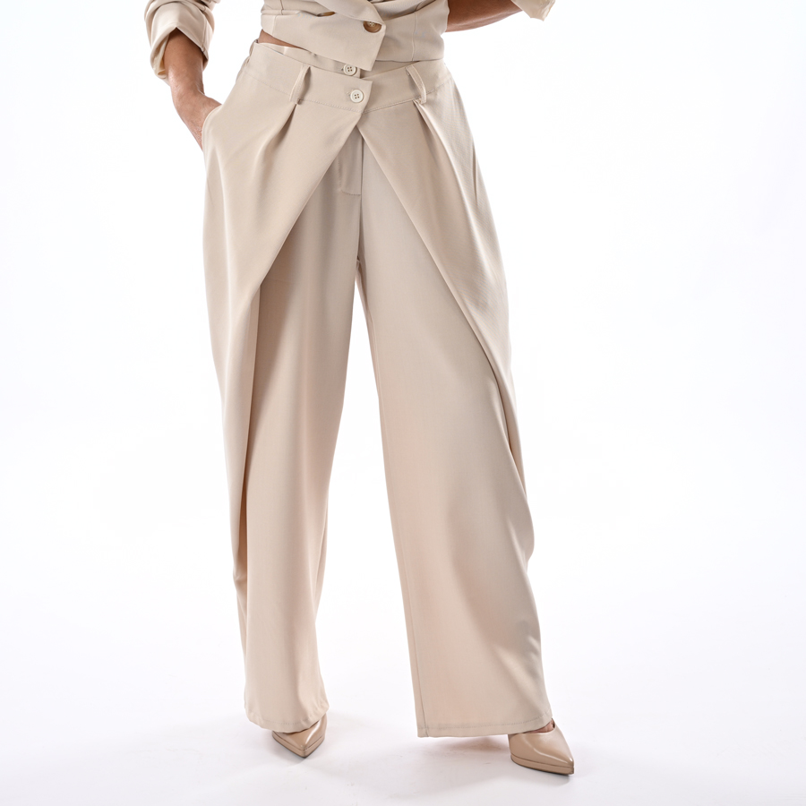 Completo con giacca a scatoletta e pantalone incrociato davanti
