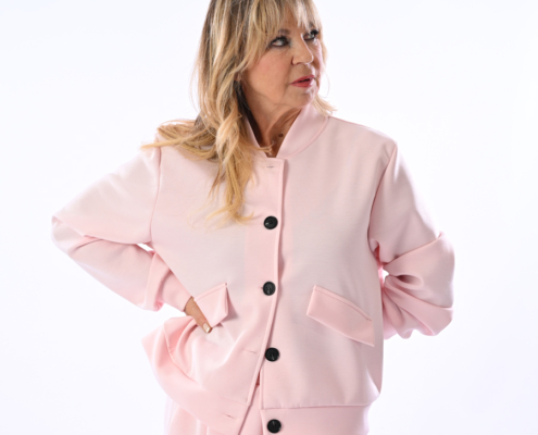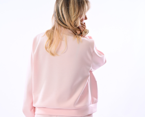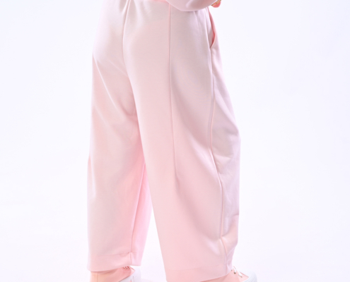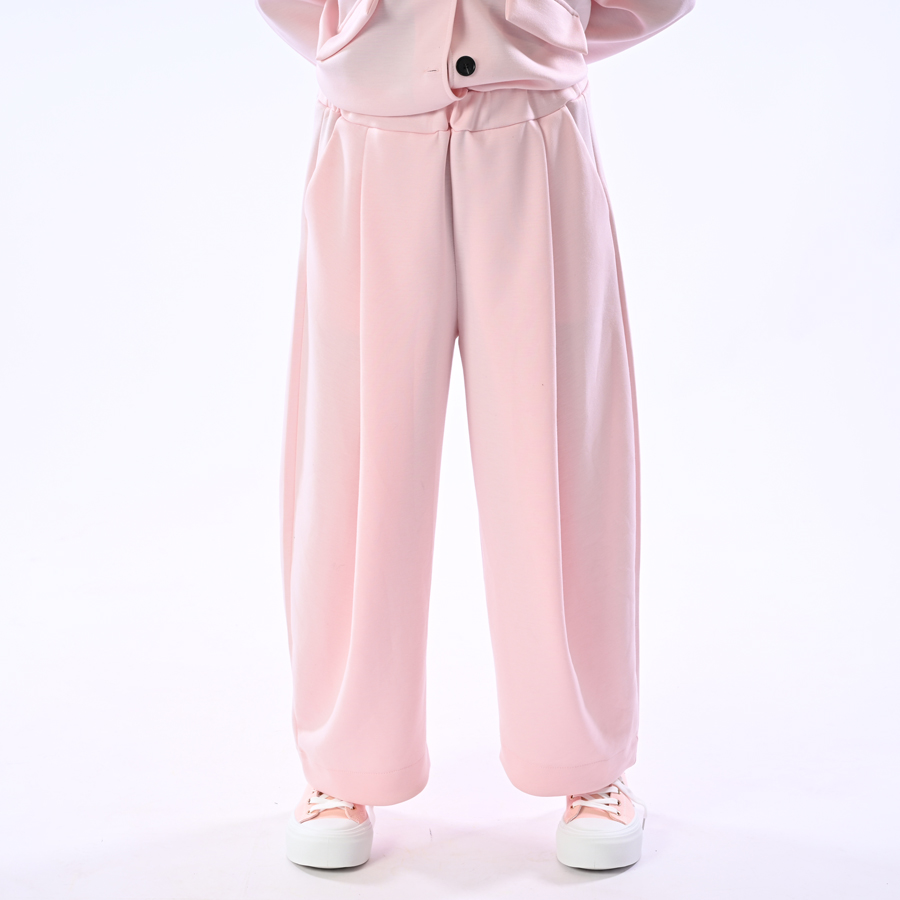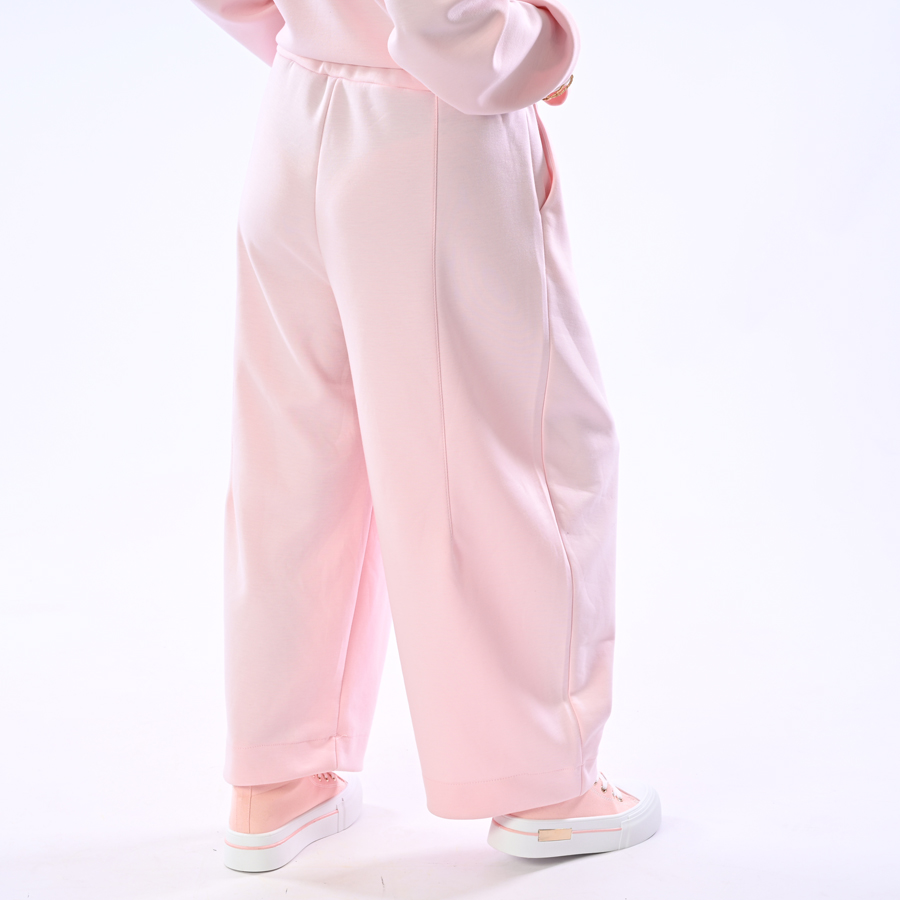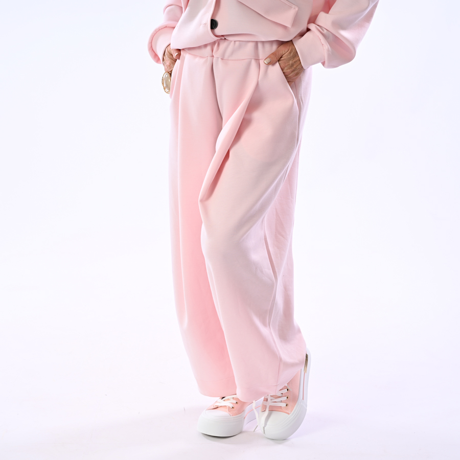 Completo pantalone sport a palazzo con elastico in vita e felpa con bottoni e tasche finte