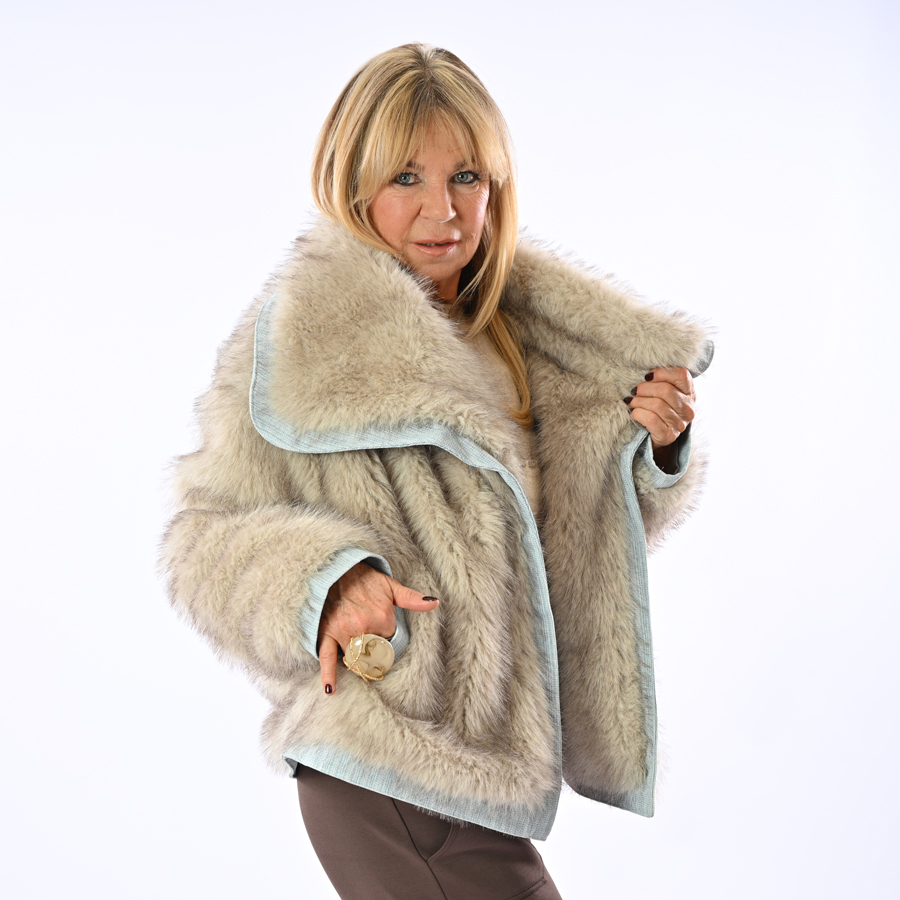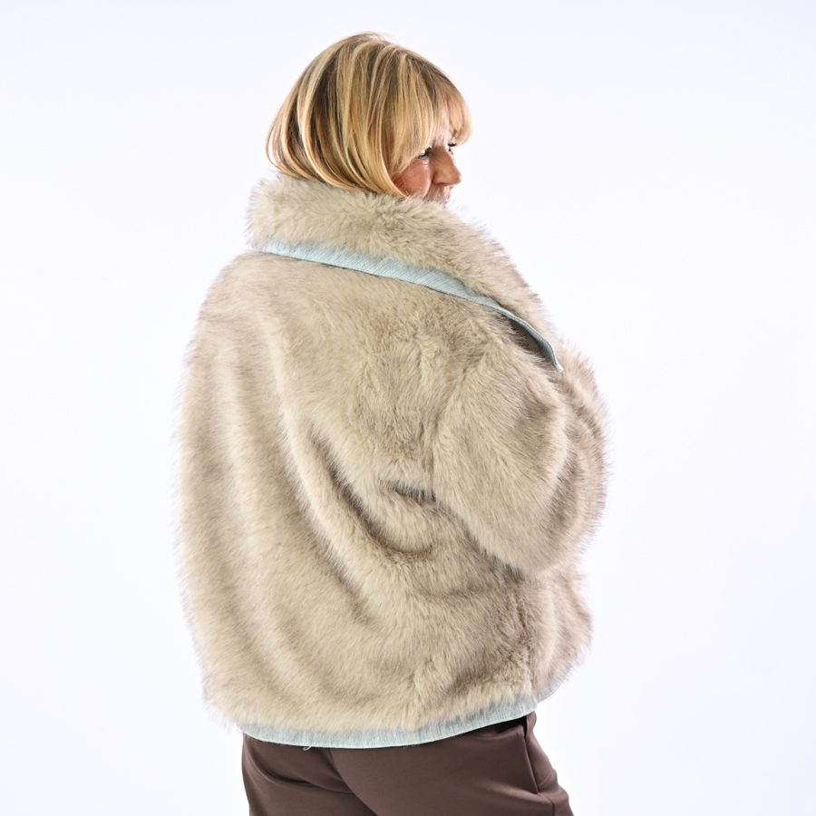 Ecopelliccia con inserti in jeans