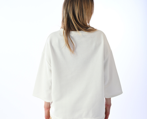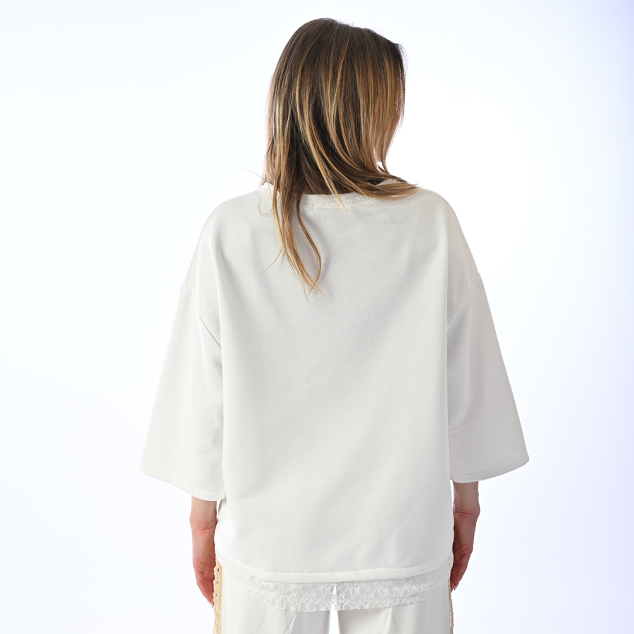 Felpa pizzo sul fondo con fiore in pizzo bianco