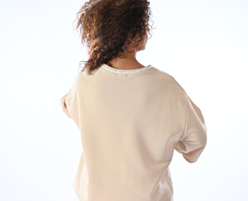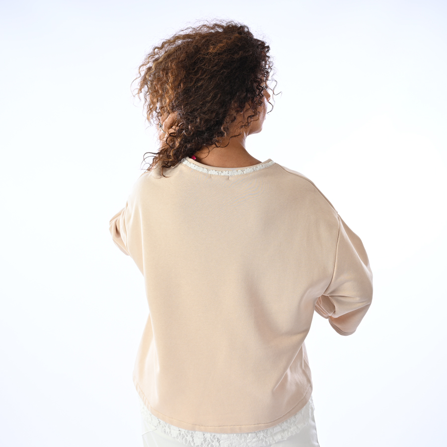 Felpa con pizzo sul fondo e fiore bianco in pizzo