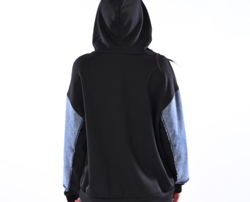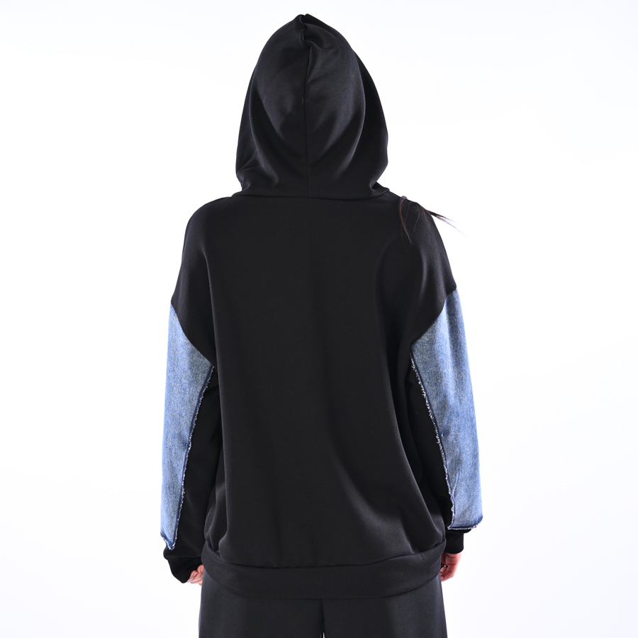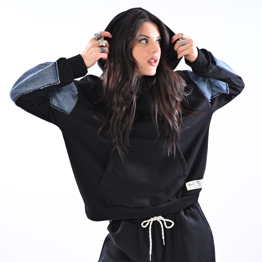 Felpa con inserti in jeans e cappuccio