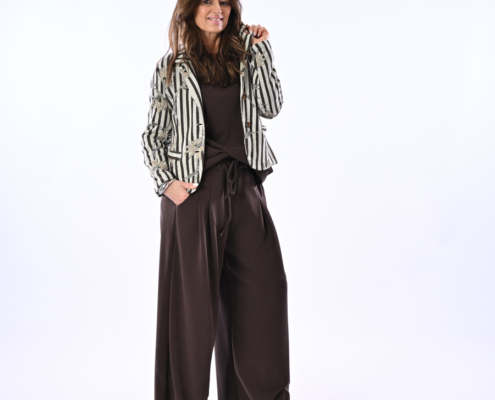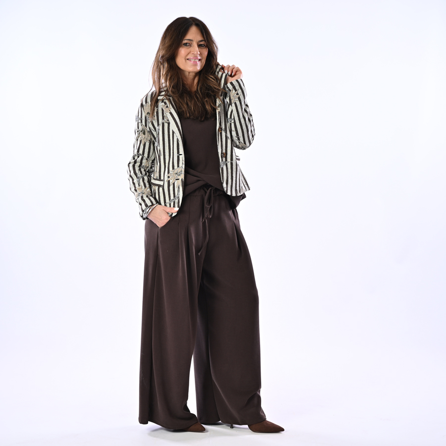 Giacca con righe e fiori chiusura bottoni
