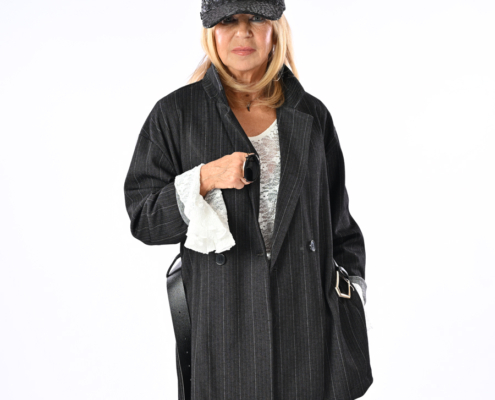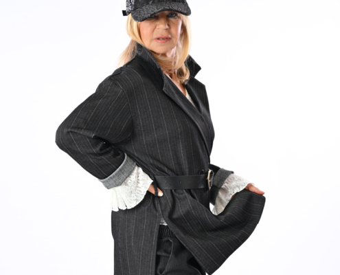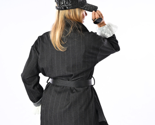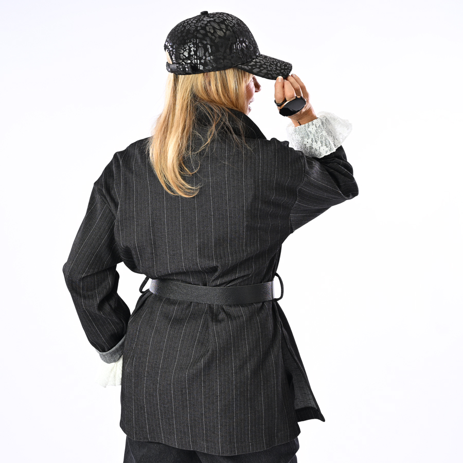 Giacca con bottoni, spacchi laterali e cintura inclusa