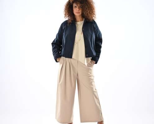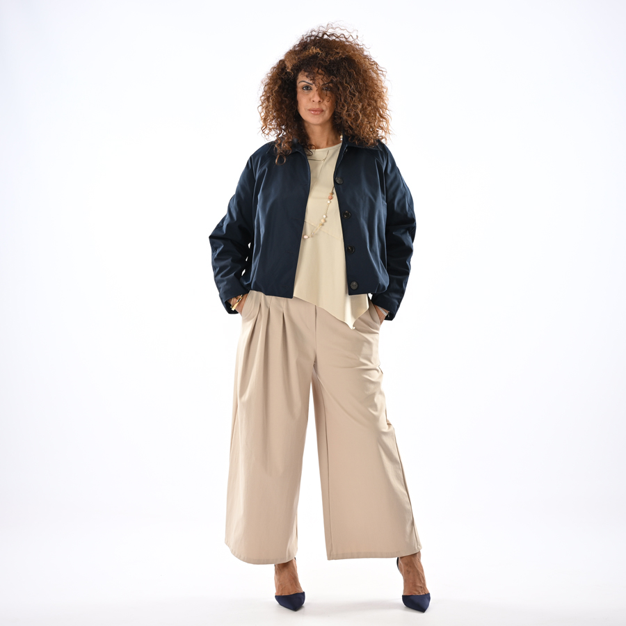 Giacca con tasche, bottoni e elastico in vita
