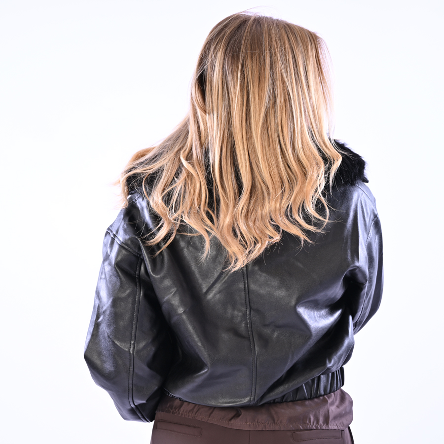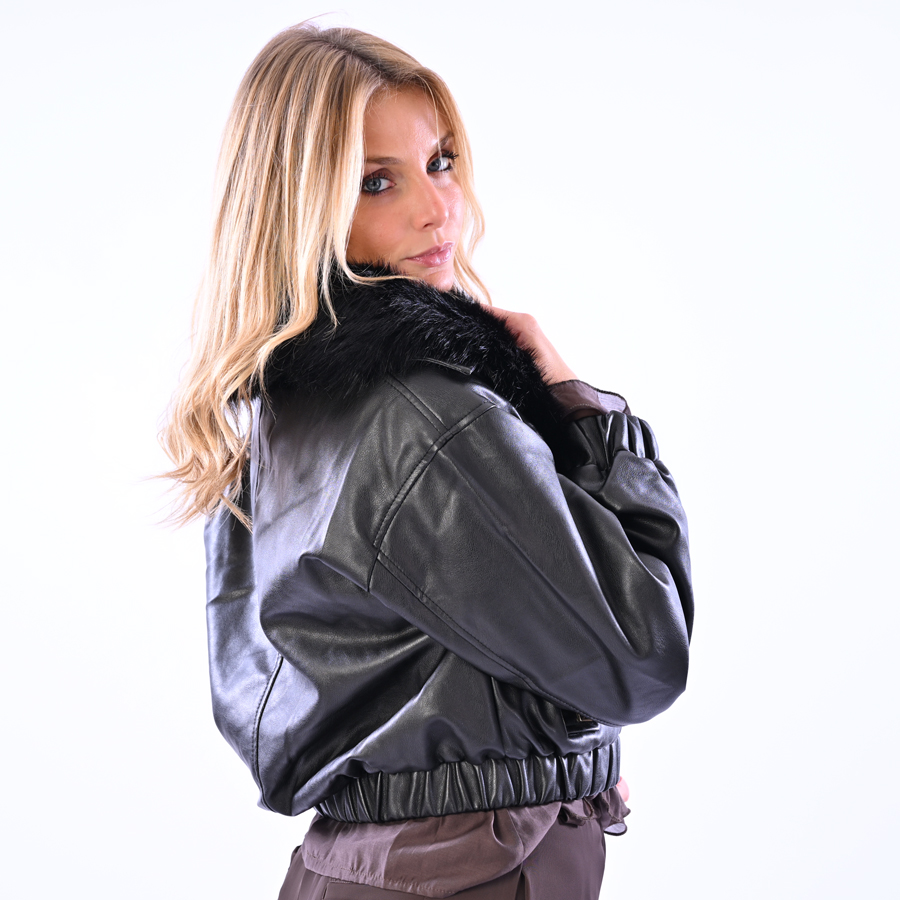 Giacchino in ecopelle con collo in ecopelliccia