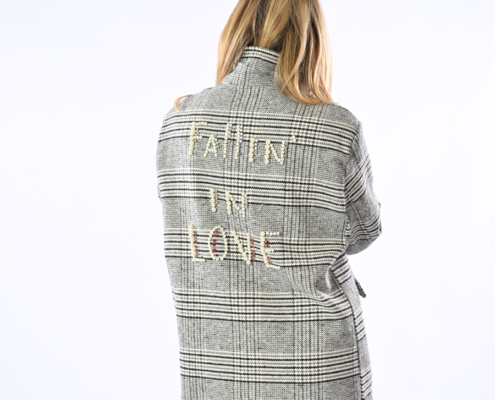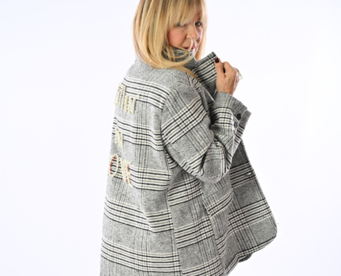 Giacca check con scritta dietro