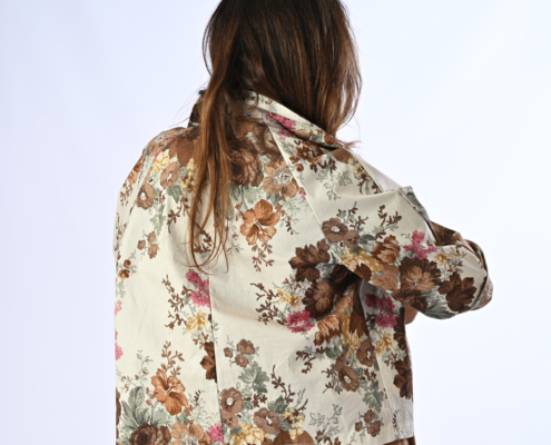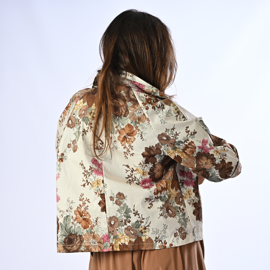 Giacca con tasche e bottoni fantasia fiori