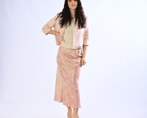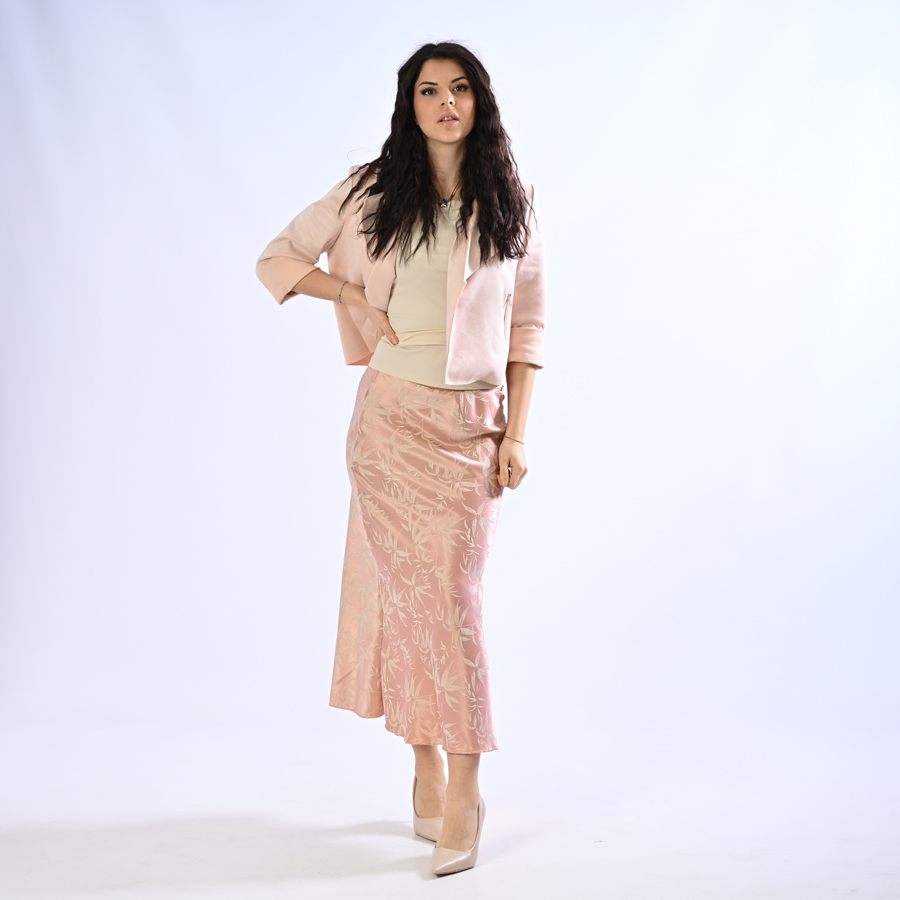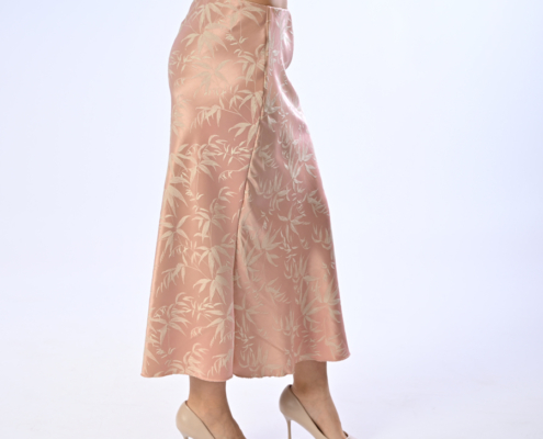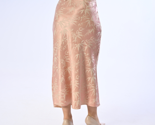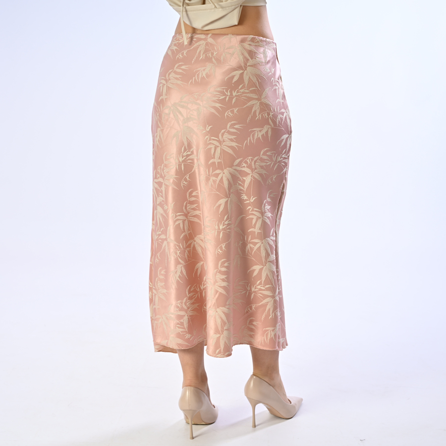 Gonna di raso con foglie ricamate