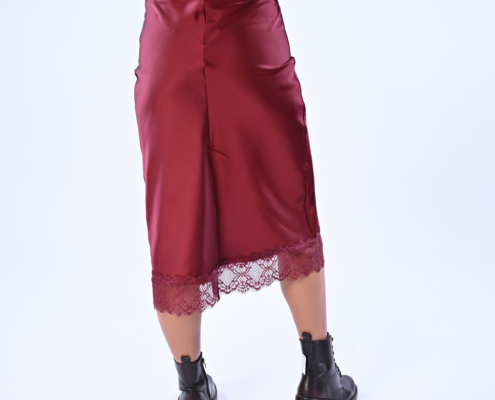 Gonna in raso con spacco dietro e pizzo con zip