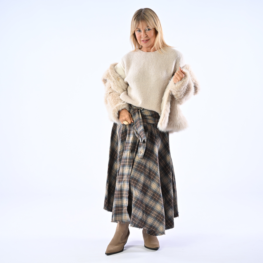 Gonna false maniche in vita con orlo a taglio vivo sfilacciato