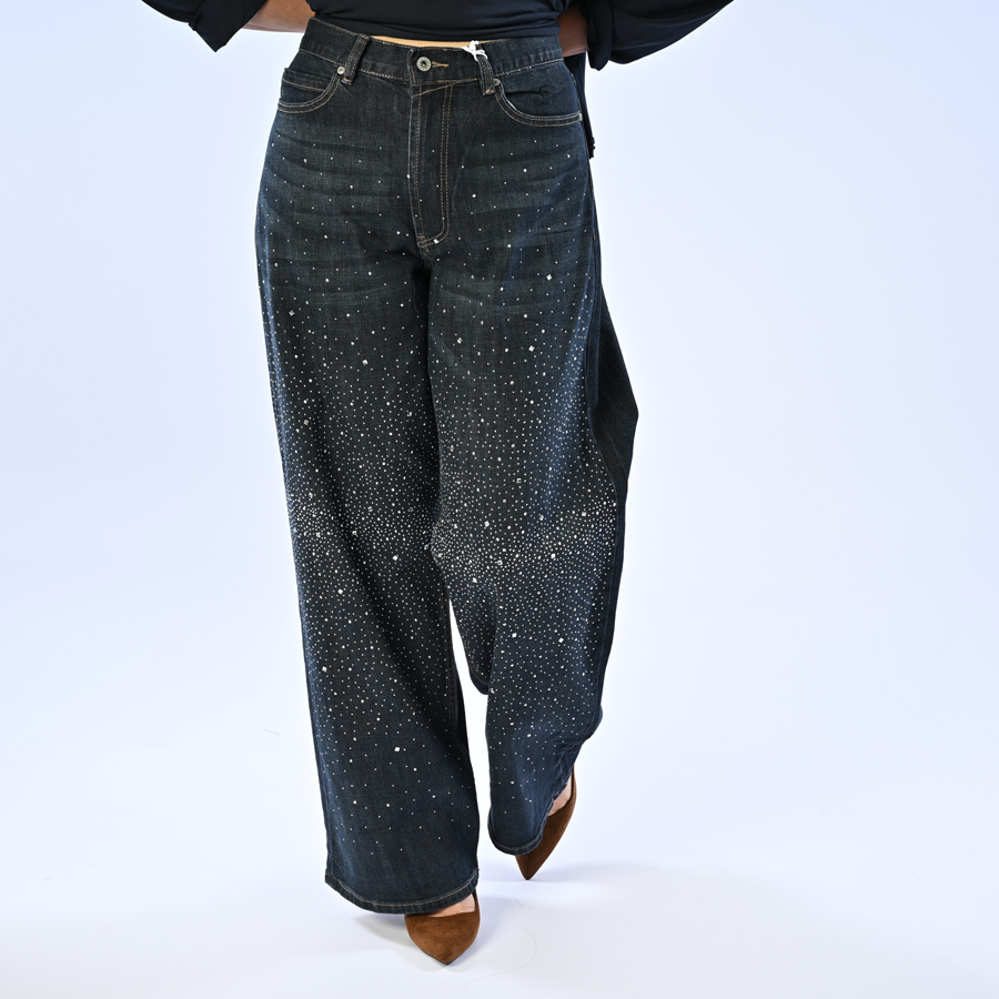Jeans straight strass davanti