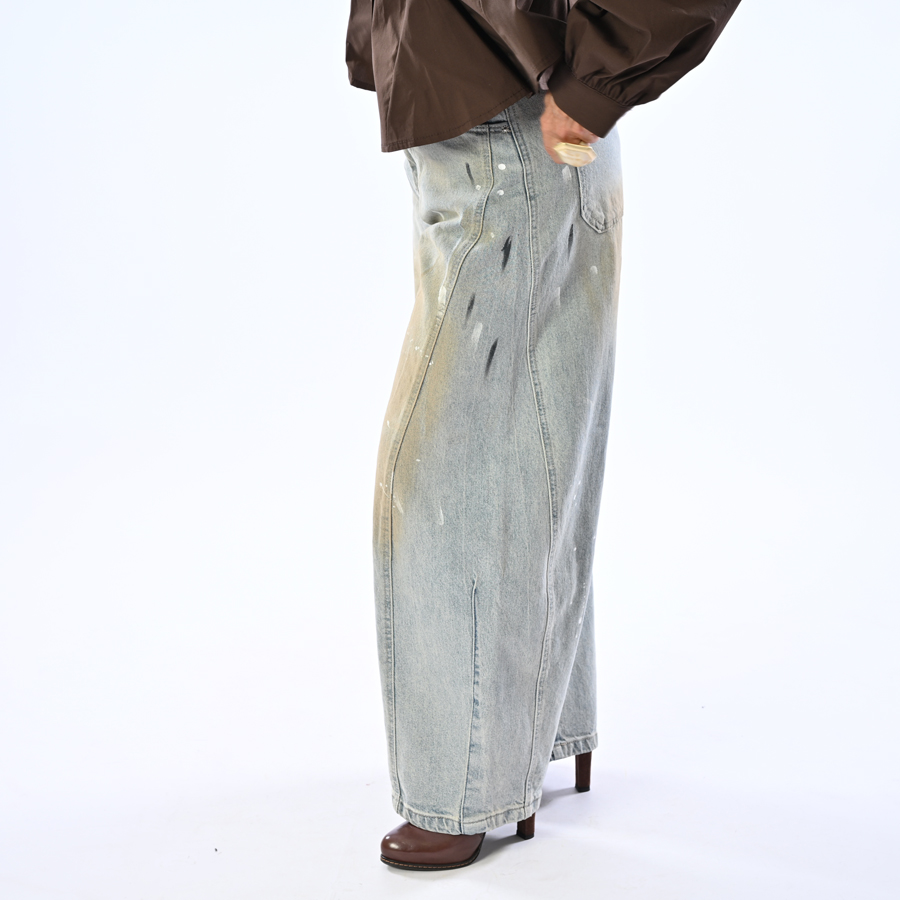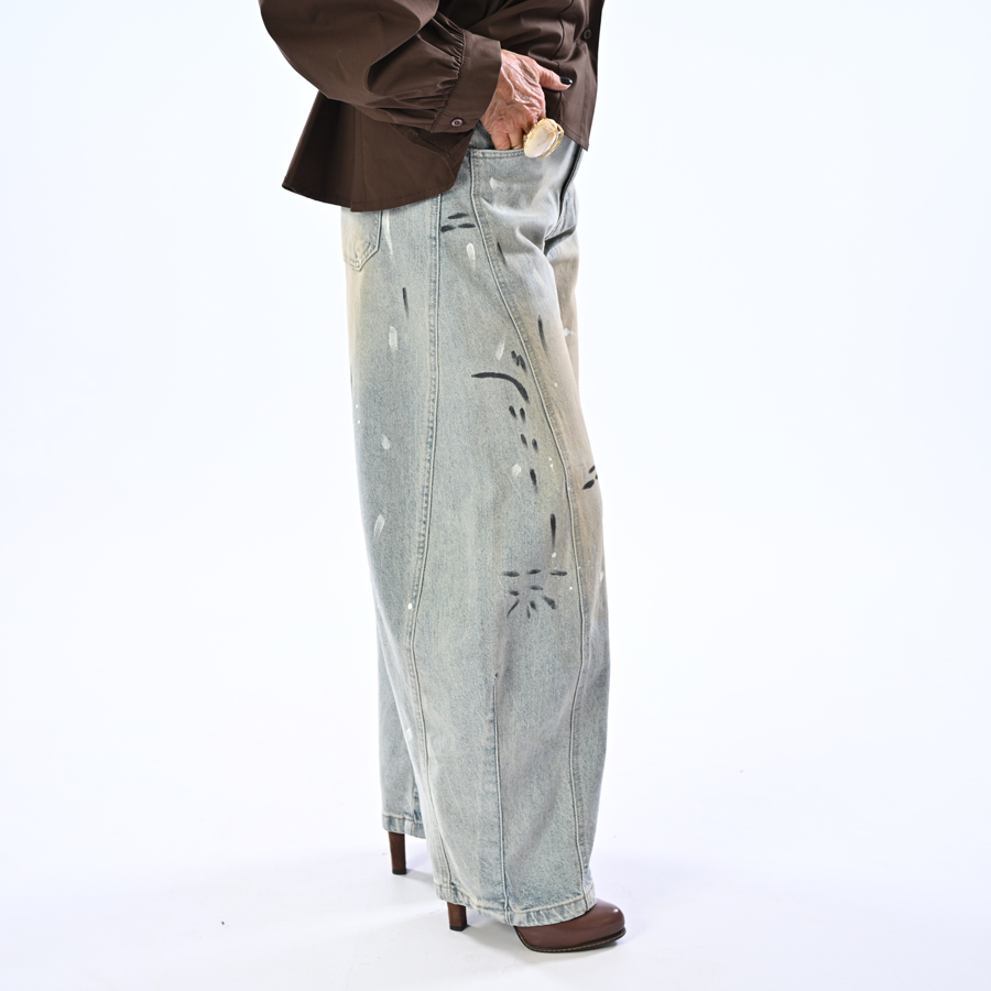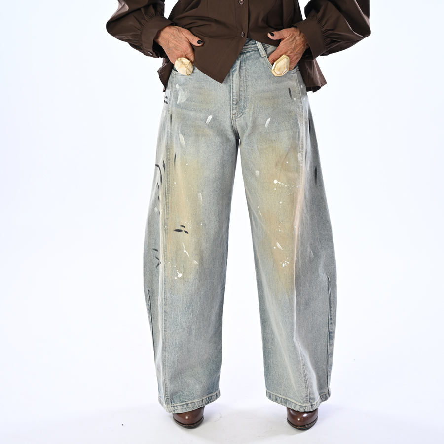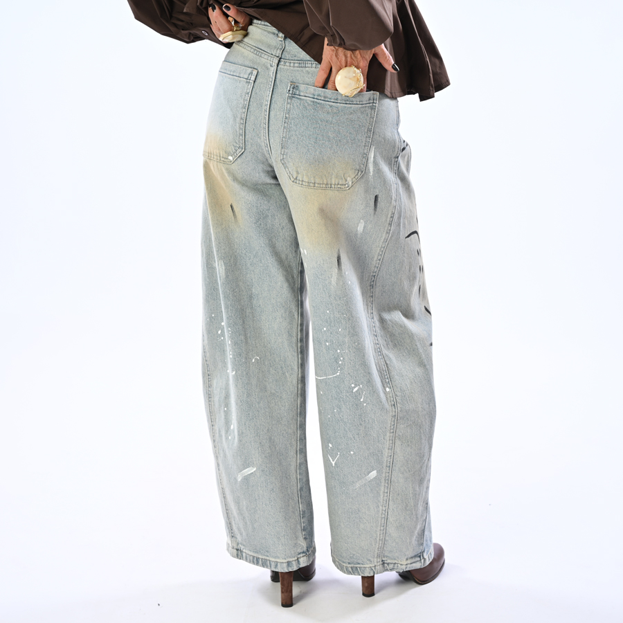 Jeans balloon con macchie di colore