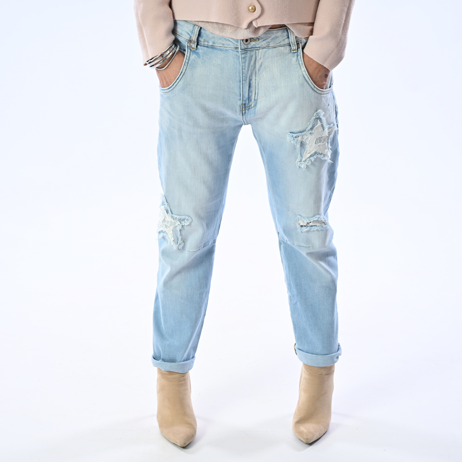 Jeans con strappi e applicazioni a stella