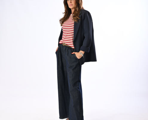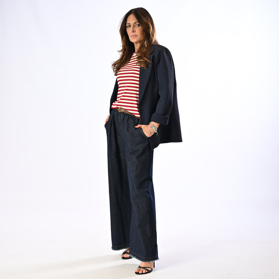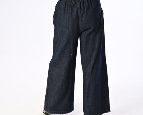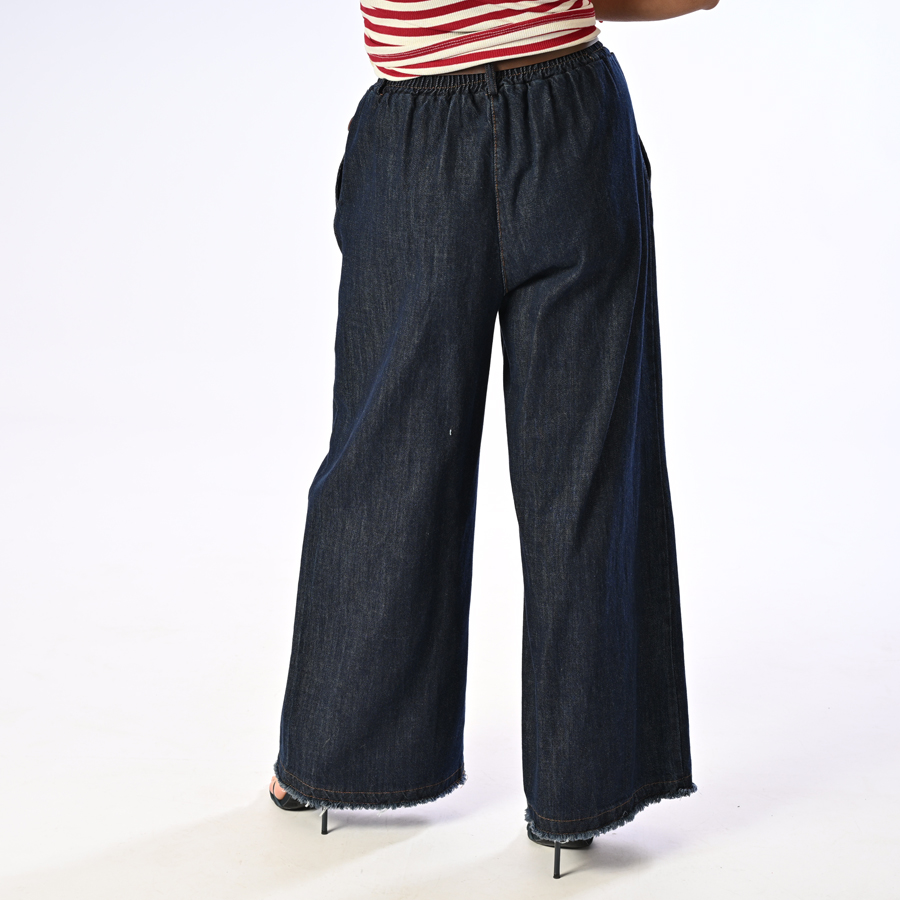 Jeans a palazzo sfrangiato sotto con elastico in vita e cintura inclusa
