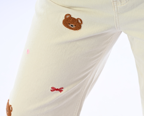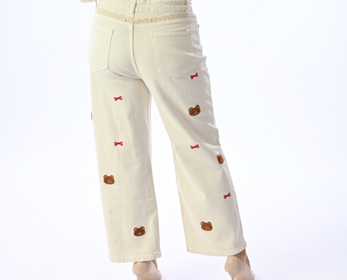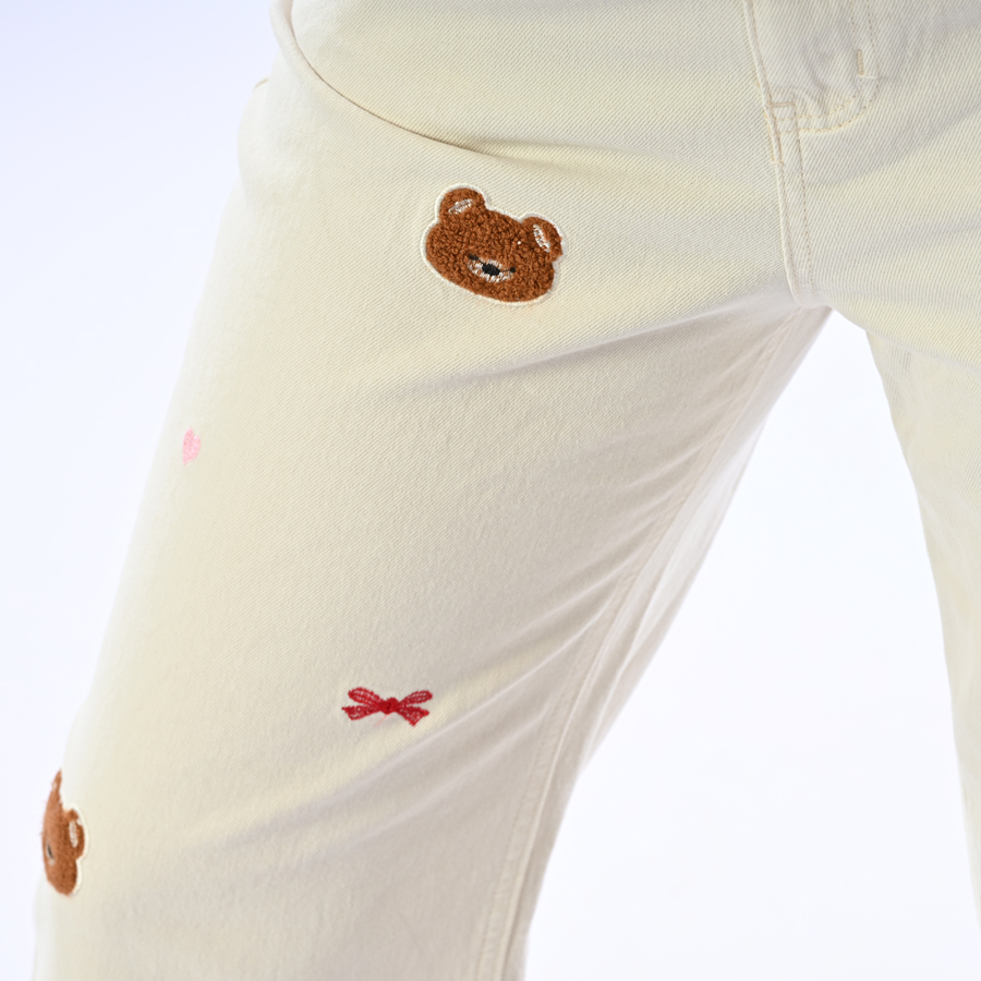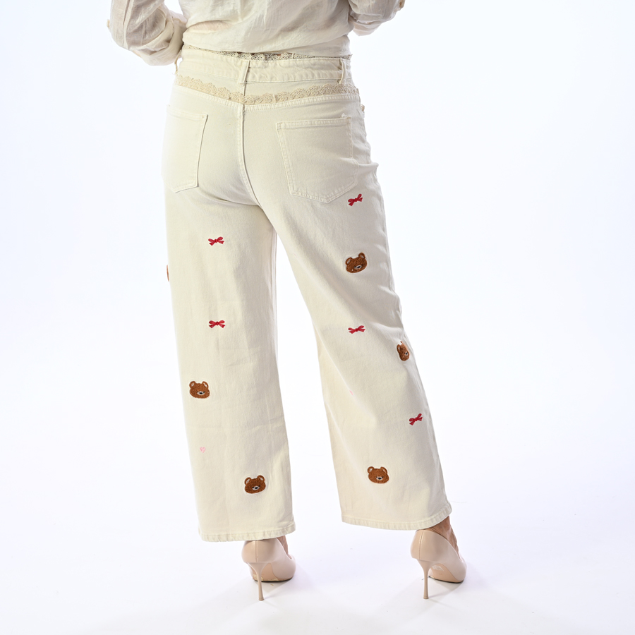 Jeans con pizzo e ricami orsetto e fiocchi