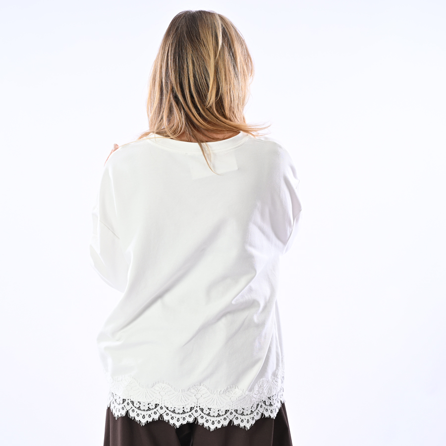 Maglia con stampa coniglio e pizzo