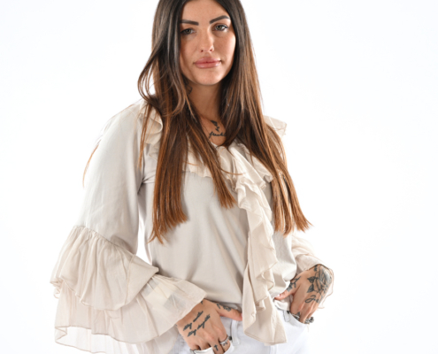 Maglia scollo a v con balze