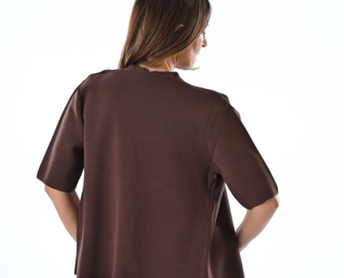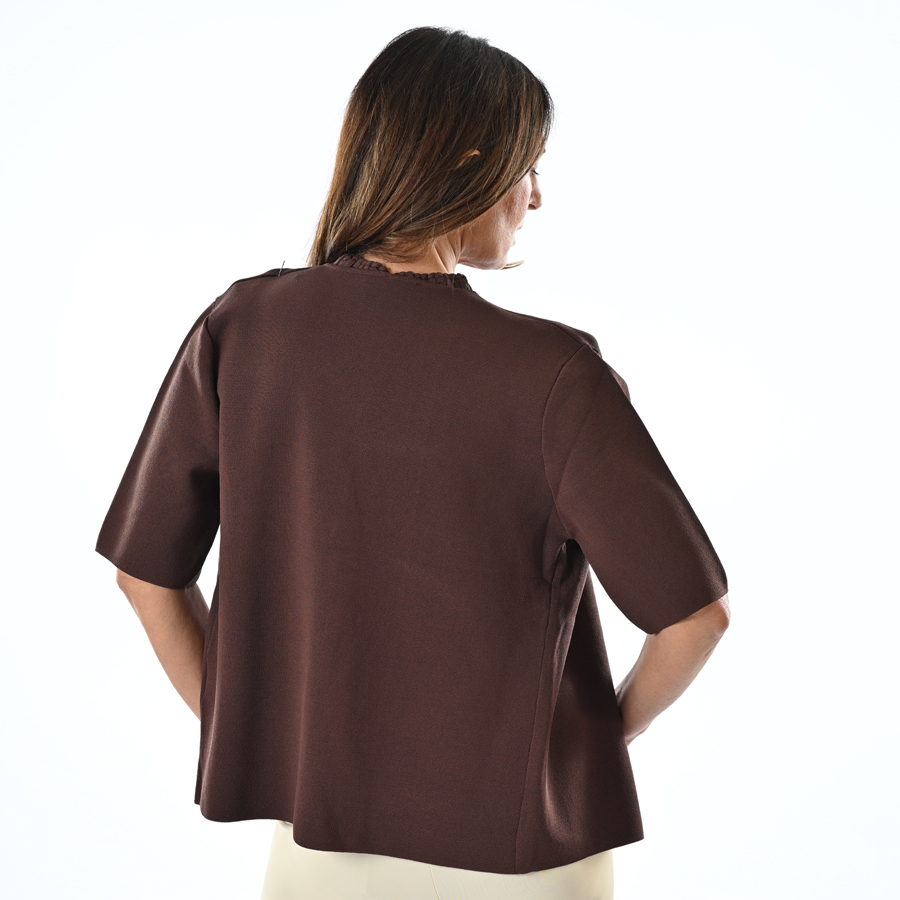 Maglia manica corta scollo a V con bottone argento