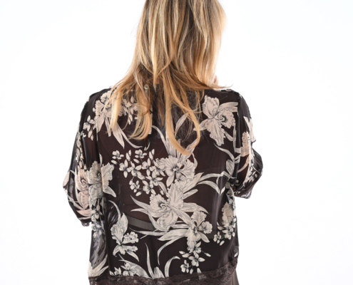 Maglia fantasia con pizzo e fiori
